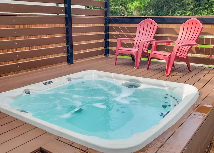 **Unwind in the inviting rooms**, designed with your comfort in mind. Each space boasts contemporary furnishings and ample amenities to ensure a restful experience. Large windows invite natural light, creating bright and cheerful surroundings. After a day of exploration, relax and recharge in the soothing hot tub, the perfect oasis for winding down and reconnecting with loved ones.